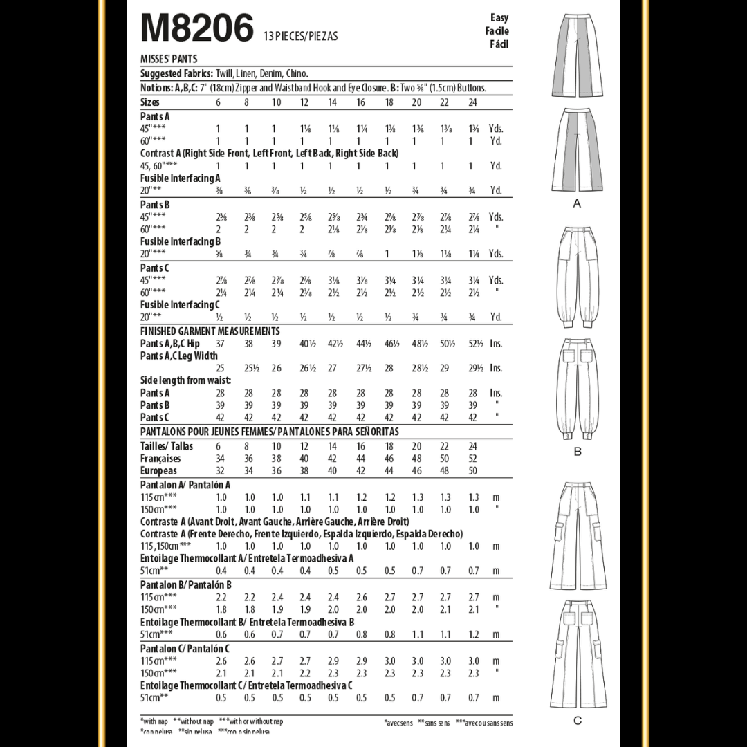 Create carpenter, cargo or colour blocked pants with the McCall's M8206 Misses' Pants Sewing Pattern!